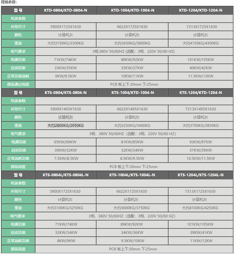 勁拓KT系列高端回流焊爐 ● 高產(chǎn)能低能耗,全新熱工學(xué)管理系統(tǒng),有效降低成本 ● 專業(yè)應(yīng)對(duì)高速生產(chǎn)及高精密度PCB封裝工藝 ● 控溫能力強(qiáng),高控溫精度 ● 超強(qiáng)快速升降溫能力 ● 全程氮?dú)舛靠煽?,各溫區(qū)獨(dú)立閉環(huán)控制 ● 最新冷卻技術(shù),可選多區(qū)雙面冷卻 ● 新型二段式助焊劑回收系統(tǒng) ● 雙軌雙速,單機(jī)成本,雙倍產(chǎn)能,節(jié)能65%。