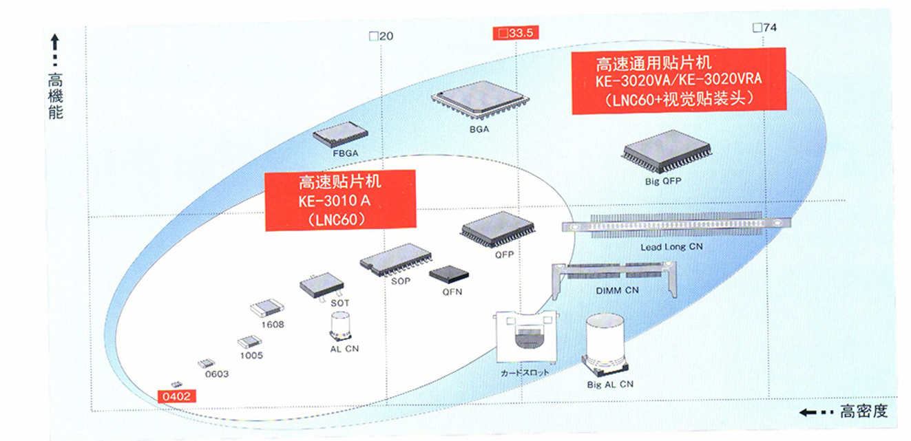 高速通用貼片機(jī)KE-3020VA/KE-3020VRA大型元件等通用元件的貼裝可采用此款機(jī)型