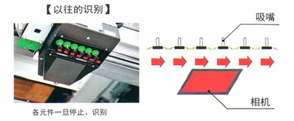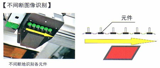 通過相機(jī)實(shí)現(xiàn)了高速無停頓圖像識別,對吸取的各個(gè)元件連續(xù)拍攝,實(shí)現(xiàn)了高速圖像識別。