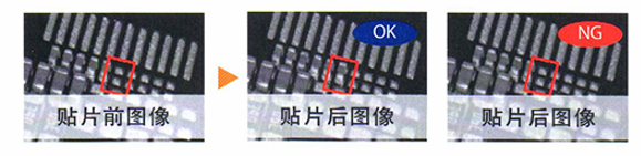 通過拍攝圖像檢測出漏貼片的狀況時(shí),設(shè)備報(bào)警自動(dòng)停止。